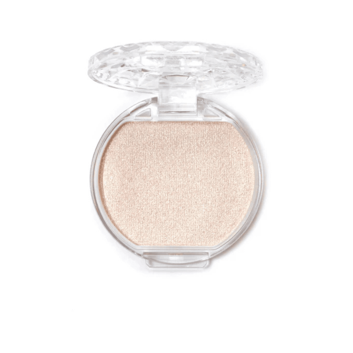 CANMAKE Munyutto Highlighter – (01) Moonlight Gem : Silver, beige, and gold light-polarizing pearls are present in this glossy white and beige highlighter.